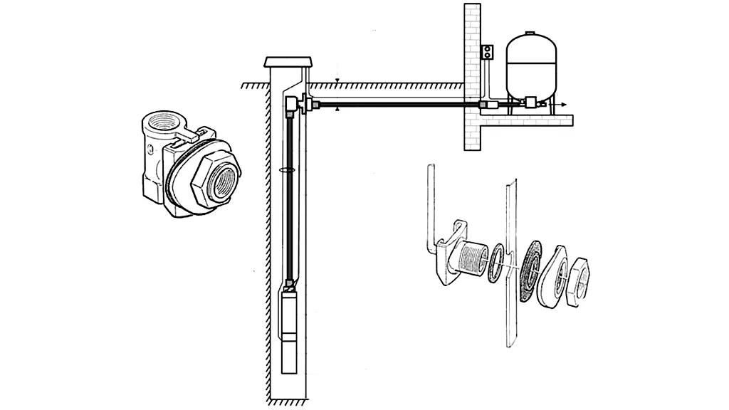 Скважинный адаптер IBO 1" предназначен для быстрого и простого соединения погружного насоса с подземной частью водопровода, идущего от скважины к дому. Он позволяет провести водопроводную трубу от насоса сквозь стенку обсадной трубы скважины, на глубине ниже уровня промерзания почвы, обеспечивая при этом полную герметичность соединений.
