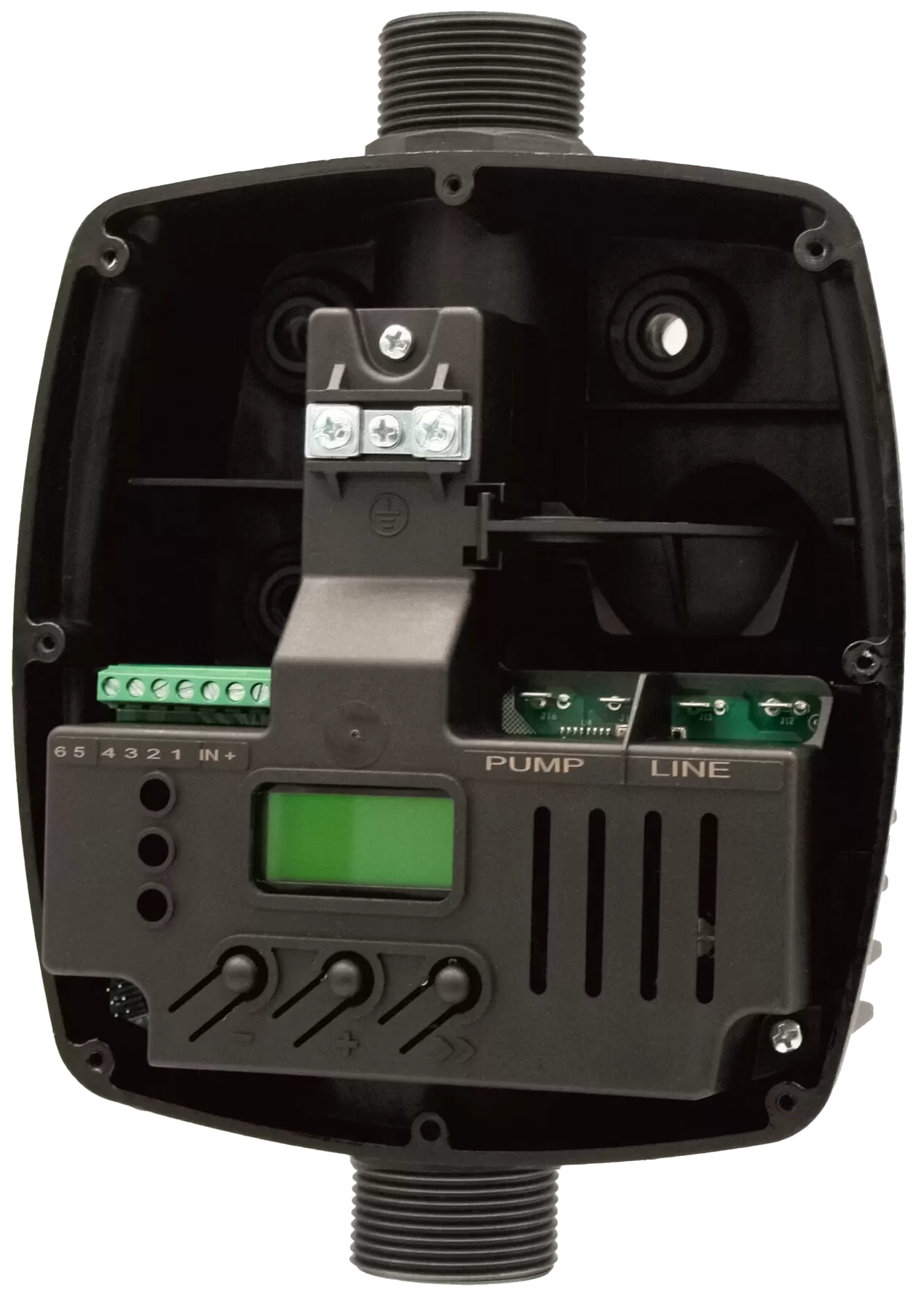 При обоих режимах работы устройство защищает насос от работы без воды, когда отсутствует вода на всасывании, при помощи комбинированного контроля потока и давления.