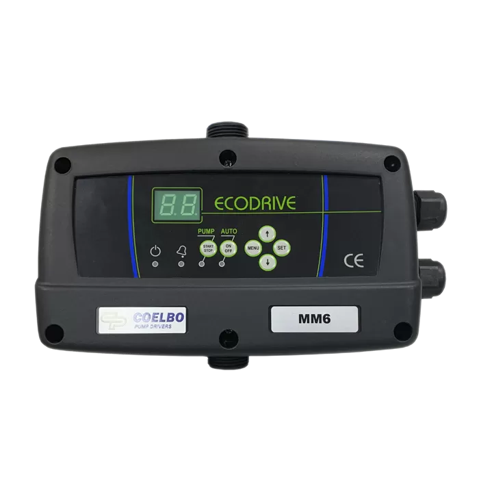 Электронный контроллер с частотным управлением Eco Drive предназначен для управления и защиты однофазного насоса водоснабжения. Мощность инвертора 6А., частотное регулирование от 30 до 50 Гц.