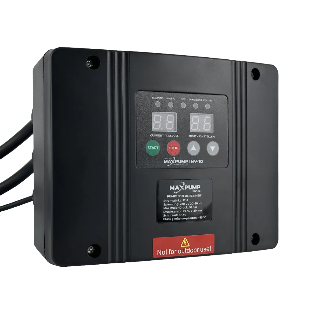 Блоки управления iNV-10 используют широтно-импульсную модуляцию с векторным управлением для поддержания стабильного давления в водопроводной системе в зависимости от потребности. При изменении расхода воды и изменении давления в системе, они автоматически регулируют скорость вращения электродвигателя. Встроенный датчик на водопроводе контролирует текущее давление, обеспечивая точную реакцию и поддержание заданных параметров.
