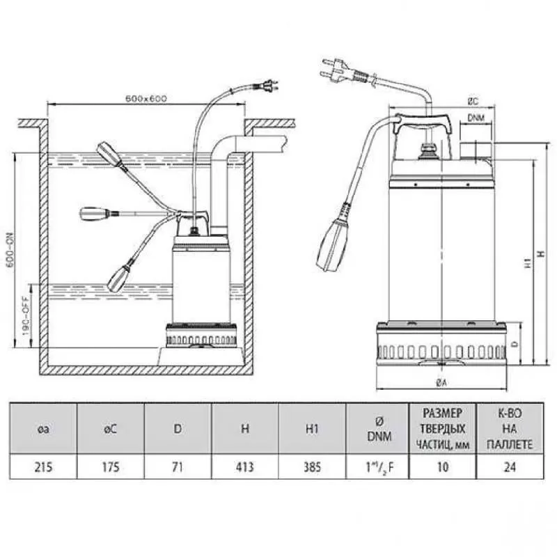 Схема дренажного насоса DAB DRENAG 1000 T-NA