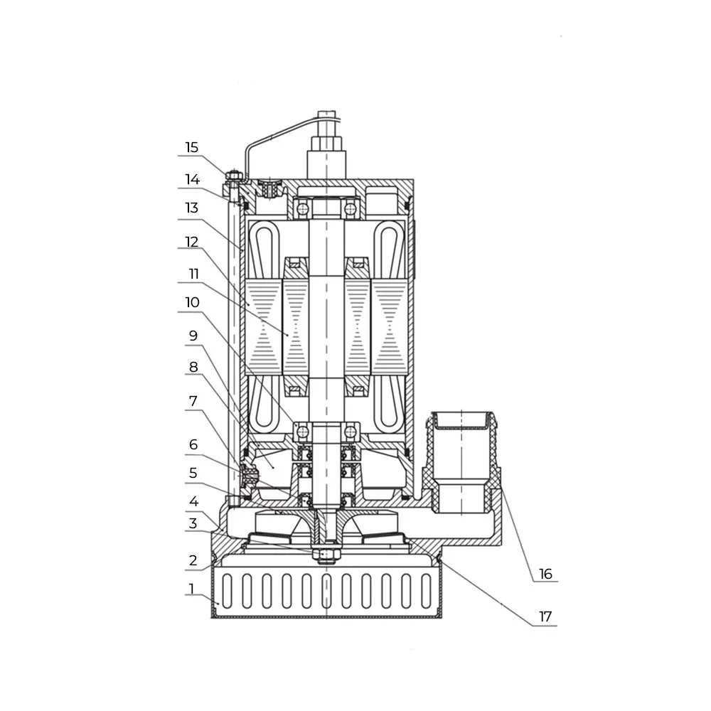 ГНОМ 16-16 без поплавкового выключателя погружной дренажный насос для грязной воды - напор 16 м3/час, высота подъема жидкости 16 метров, для однофазной сети на 220В. Представляет собой переносной моноблок, состоящий из электродвигателя и насосной части (центробежный насос). Насосная часть отделена от электродвигателя системой уплотнений с масляной камерой.