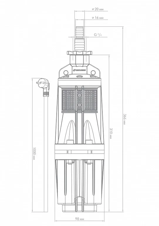 - Запрещено использовать кабель питания в качестве подвеса насоса, это приведёт к повреждению провода.