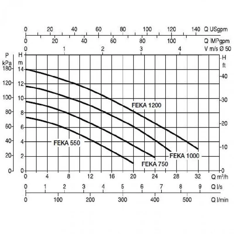 Графические характеристики фекального насоса DAB FEKA VS 1000 T-NA