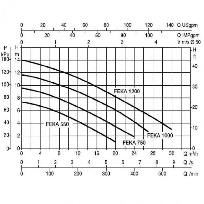 Графические характеристики фекального насоса DAB FEKA VS 550 M-A