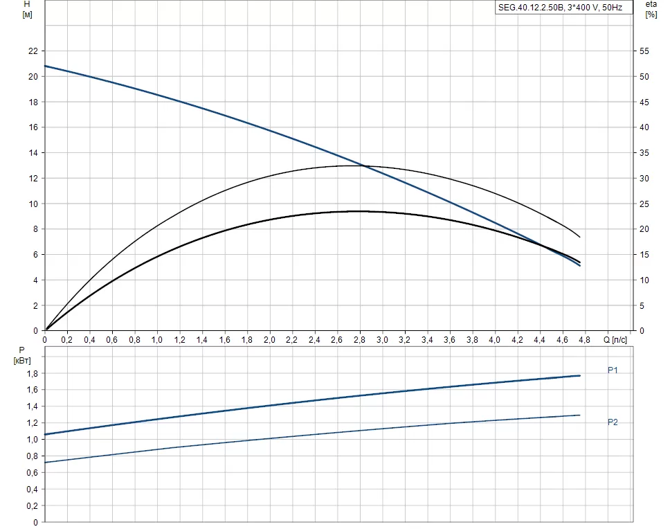 Графические характеристики фекального насоса GRUNDFOS SEG.40.12.2.50B