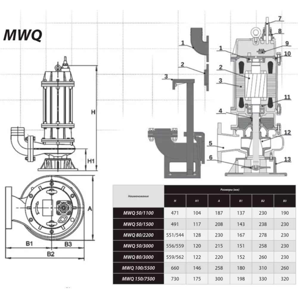 Фекальный насос IBO MWQ 50/1100 (400В)