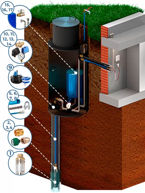Водоснабжение односемейных домов и дачных домиков. Полив садов.Установка скважинного насоса IBO 3STM 24
