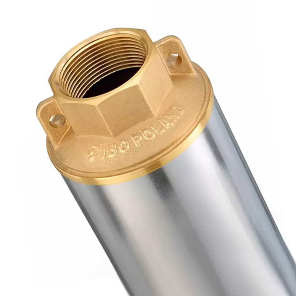 Насос для скважины IBO 3Ti 37 3–х дюймовые многоступенчатые погружные насосы диаметром 74 мм с повышенной стойкостью к песку, рассчитаны на 3 и 4– дюймовые скважины. Напорная характеристика насоса составляет 152 м при максимальной производительности в 3 м³/час, при этом мощность электродвигателя составляет 1100 Вт. Эффект повышенной устойчивости к песку был достигнут благодаря использованию «плавающих лопастных колес» и выбору износостойких материалов: латуни, нержавеющей стали AISI 304 и высококачественного пластика. В связи с этим гарантийный срок на насос 1100 Вт предоставляется на 2 года Конденсатор насоса IBO 3Ti 37 встроен в двигатель, благодаря чему электрическая установка намного проще, чем в случае насосов со стартовой коробкой. Длинна кабеля насоса 1100 Вт составляет 1 м. Насосы оснащены тепловой защитой, установленной в обмотке двигателя. Насосы серии 3” Ti благодаря своей бесперебойной работе и высоким параметрам были признаны чаще всего устанавливаемыми насосами в Польше.