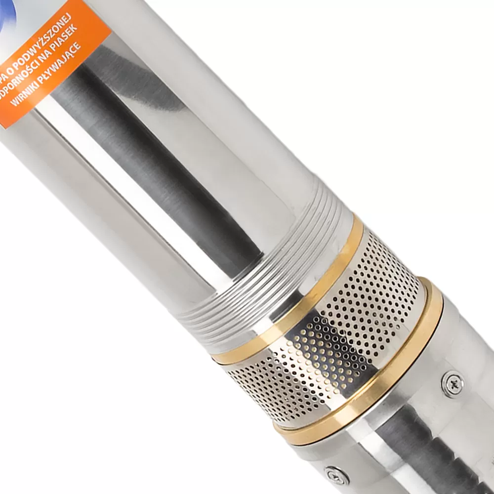 Скважинный погружной насос для скважины IBO 4SD(m) 2/12 диаметром 98 мм с повышенной устойчивостью к песку, предназначенные для установки в скважинах диаметром не менее 125мм. Насос IBO 4SD(m) 2/12 доступен с двигателями IBO и итальянскими двигателями IBO ITALY. Благодаря использованию «плавающих лопастных колес» и выбору износостойких материалов: латунный нагнетательный патрубок, корпус, вал и сетка фильтра выполнены из нержавеющей стали AISI 304 / а также лопастные колеса выполнены из высококачественной пластмассы IBO 4SD(m) 2/12 имеет повышенную стойкость к песку. Насос комплектуется кабелем 1 м, по желанию его можно нарастить до нужного размера. Глубинный насос IBO 4SD(m) 2/12 обладает отличными характеристиками. Напор насоса в максимальной точке составляет 84 м, а производительность достигает максимального показателя в 4.5 м³/час. Мощность двигателя составляет 750 Вт, то вполне неплохо для насоса с такими напорно-расходными характеристиками. Насосы серии 4SD марки ИБО были первыми насосами на рынке, названными «анти–песочными». Они по прежнему являются одними из немногих скважинных насосов на рынке, которые имеют конструкции с такой высокой устойчивостью к песку. Максимальное содержание песка в воде – до 5%.