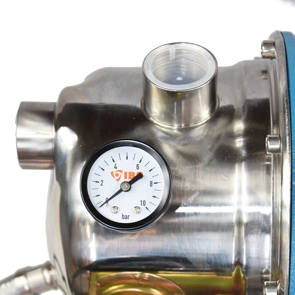 Насосная станция IBO AJ 50/60 50л оснащена системой увеличивающей мощность всасывания благодаря использованию трубки Вентури, благодаря данной системе насос способен поднять воду с глубины до 8 метров. Корпус насоса и вал в части, контактирующей с водой, выполнены из нержавеющей стали (версия INOX). Насосная станция имеет производительность в 3.6 м³/час, данной производительности будет достаточно чтобы организовать односемейного дома. За давление воды из крана отвечает напорная характеристика, максимальный напор в насосной станции IBO AJ 50/60 50л достигает 50 м. Насосная станция состоит из поверхностного самовсасывающего насос, системы автоматики на базе реле давления и манометра, гидроаккумулятора объемом 50 л. Насос имеет шнур питания с вилкой 0.5 м. Двигатель насоса оснащен тепловой защитой и имеет мощность в 1100 Вт.