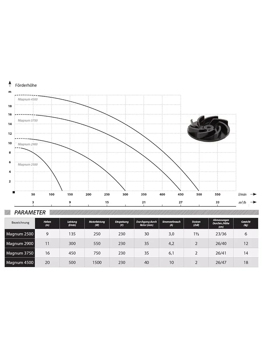 Графические характеристики фекального насоса IBO MAGNUM 3750