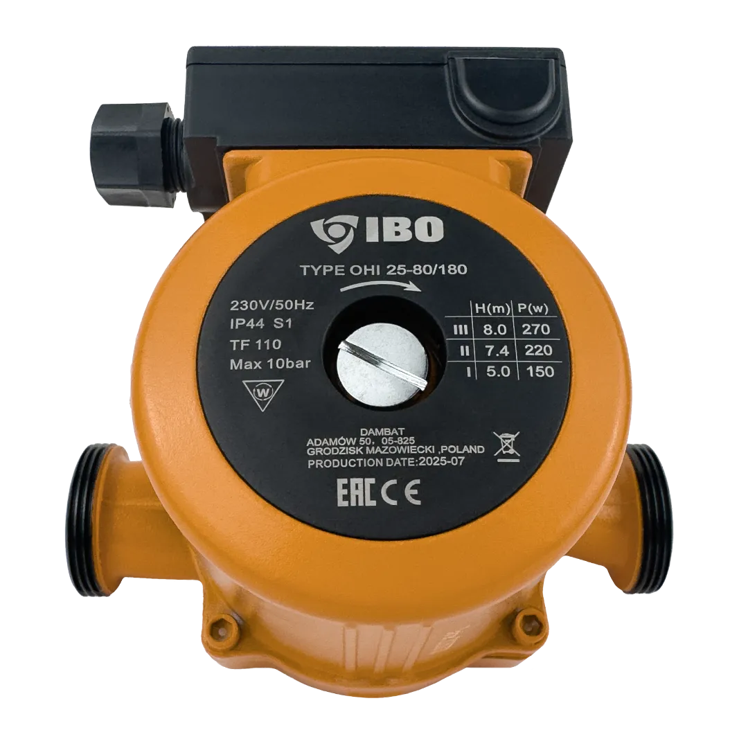 Этот насос обладает высоким уровнем защиты (IP44 / B) и может работать при температурах от 2°C до 110°C. Материал корпуса из чугуна и крыльчатки из технополимера обеспечивают превосходную прочность и долгий срок службы. С технической точки зрения, он имеет максимальное рабочее давление 10 бар и подходит для чистой воды. Кроме того, наш насос OHI 25-80/180 (IBO) предлагает три скорости работы, что позволяет настроить его под конкретные требования вашей системы отопления. С сетью питания 230 В и частотой тока 50 Гц, он эффективно и экономично обеспечивает циркуляцию жидкости .