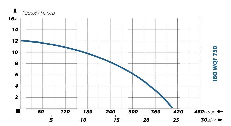 Максимальный напор: Насос имеет максимальный напор в 12 м, что позволяет перекачивать воду на значительные расстояния и высоты.