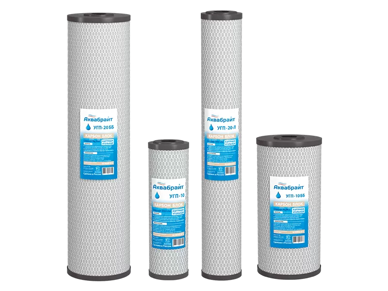 Картридж для фильтра АКВАБРАЙТ УГП-10 SL изготовлен из спеченного прессованного активированного угля с пищевым допуском. Предназначен для очистки воды от хлора, органики и микроорганизмов.