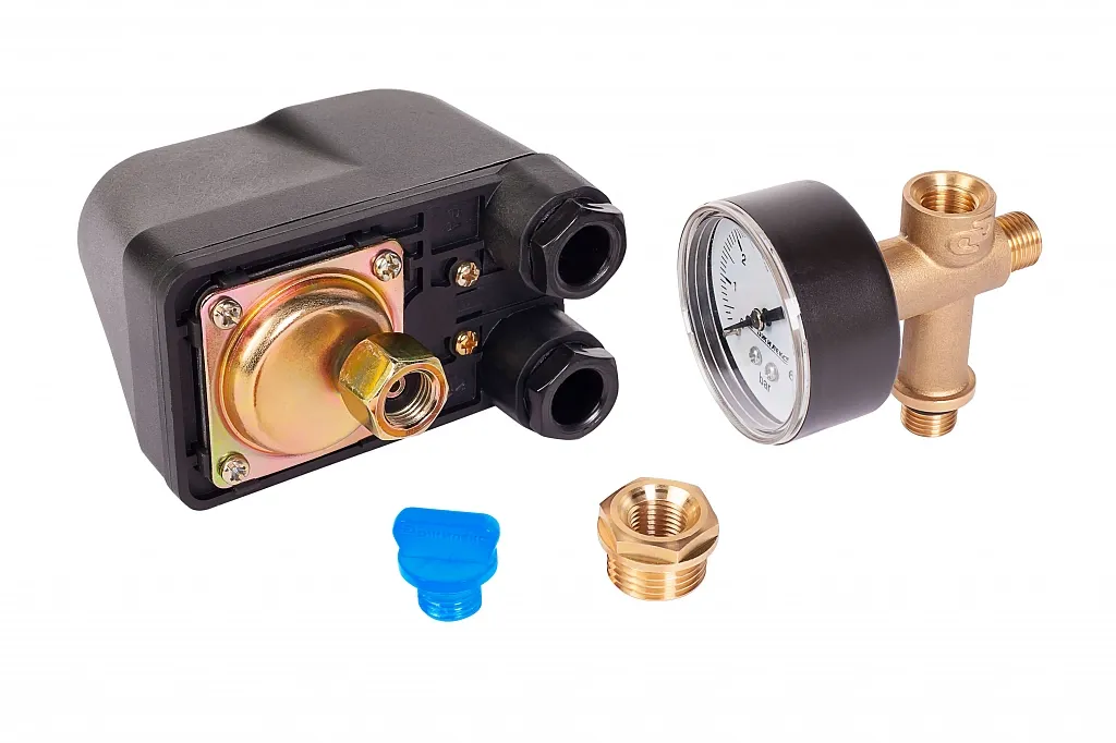 Комплект автоматики на баке «КАБ» используется для работы в системах водоснабжения совместно с гидроаккумулятором. Установленное на штуцере реле давления представляет собой двух-контактное реле коммутации электрических цепей, срабатывающее по величине давления воды. После прекращения разбора воды давление в системе растет до верхнего предела настройки реле давления, после чего реле давления выключает электронасос. При открытии крана вода поступает в систему под давлением из гидроаккумулятора. По мере расхода воды давление в системе падает до нижнего предела настройки реле давления, после чего реле давления включает электронасос.