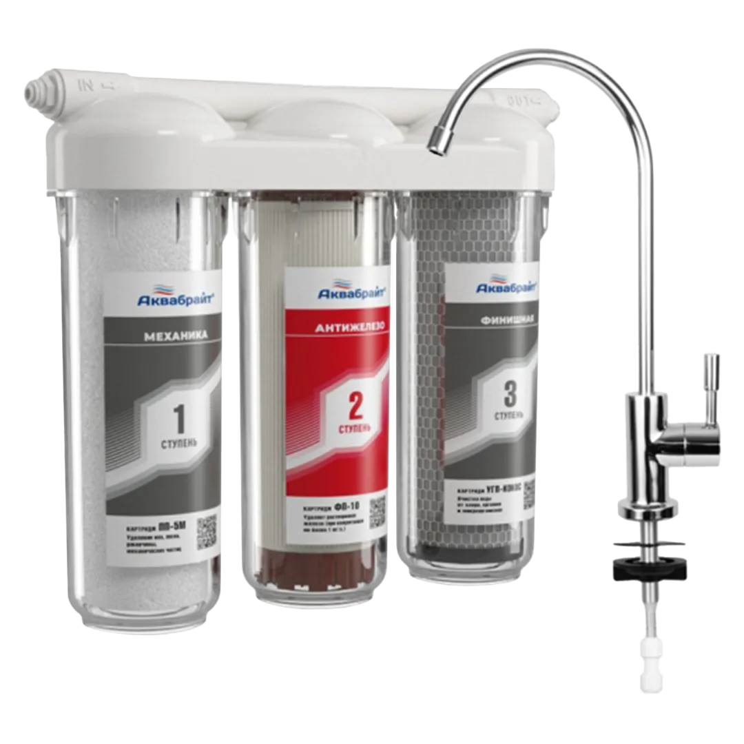 АБФ-ТРИА - АНТИЖЕЛЕЗО Система очистки воды предназначена для очистки холодной воды от хлорорганических соединений, железа, пестицидов, тяжелых металлов, бактерий и вирусов. Очищенная вода предназначена для питья, приготовления пищи и т.п.