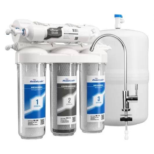 БФ-ОСМО-5 Система очистки воды с обратноосмотической мембраной предназначена для очистки холодной воды от хлорорганических соединений, железа, пестицидов, тяжелых металлов, бактерий и вирусов. Очищенная вода предназначена для питья, приготовления пищи и т.п.