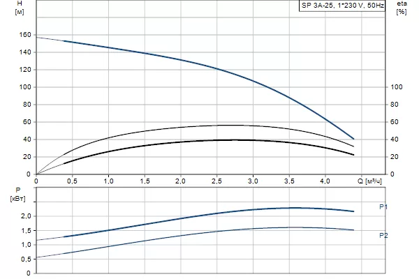 Насос Grundfos SP 3A-25 создан с применением новейших гидравлических технологий. Grundfos SP 3A-25 созданные специально для того, чтобы обеспечивать максимальную эффективность в периоды высокой нагрузки, насос имеет низкую стоимость и высокую надёжность эксплуатации вне зависимости от вида назначения. Grundfos SP 3A-25 обеспечивает высокую эффективность, высокое сопротивление абразивному износу (песку и иным абразивам), защиту от перегрева двигателя и простоту технического обслуживания. Также доступна готовая к применению система контроля и управления, предназначенная для постоянной оптимизации работы насосной системы. Максимальная производительность насоса 4.3 м3/час, максимальный напор 140 м при мощности электродвигателя 1500 Вт. Насос работает от сети 220 в. Гарантийный срок на насос Grundfos SP 3A-25 составляет 2 года.