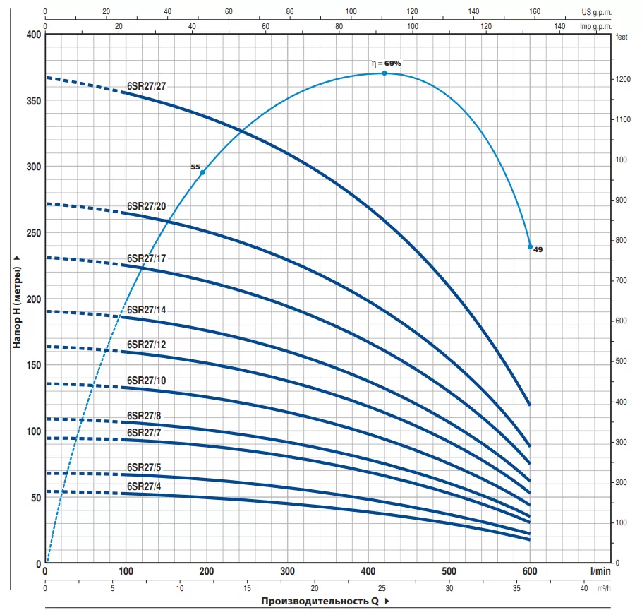 Устройство насоса Pedrollo 6SR27/27-P: