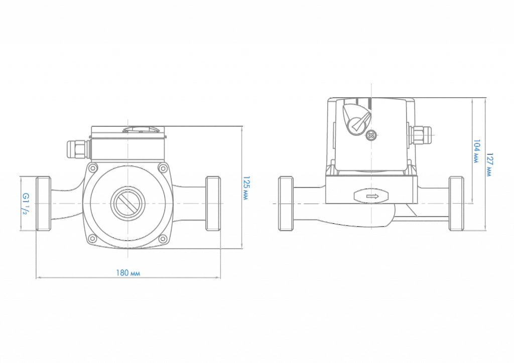 - Установочный размер между присоединительными фланцами — 180 мм.