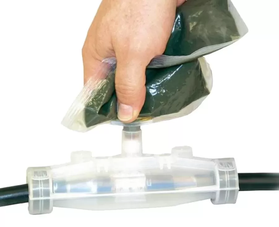 - применяемый с заливной муфтой электротехнический полиуретановый компаунд 3М™ Scotchcast™ 470 является гидрофобным и не растворяется в воде, что позволяет длительно эксплуатировать муфту в погруженном состоянии, в частности, для питания оборудования погружных насосов;